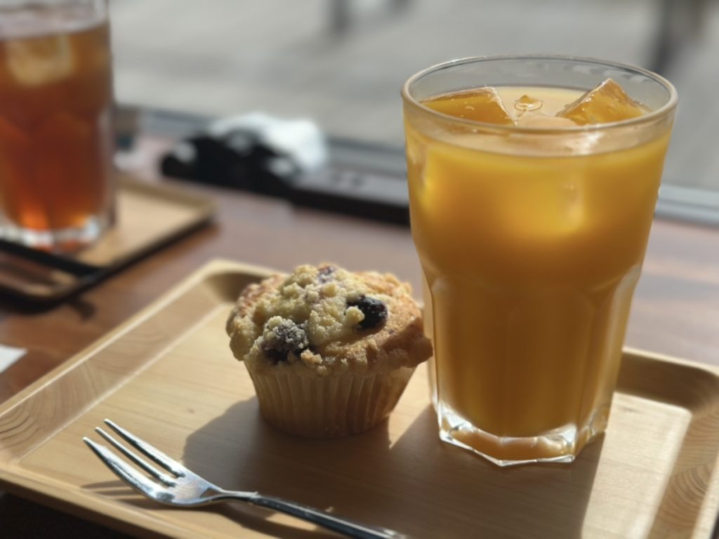 私たちは、本日のケーキ2種とアイスとドリンクがセットになった「ケーキセット」(1000円)と自家製マフィンとドリンクの「マフィンセット」(800円)を注文しました。