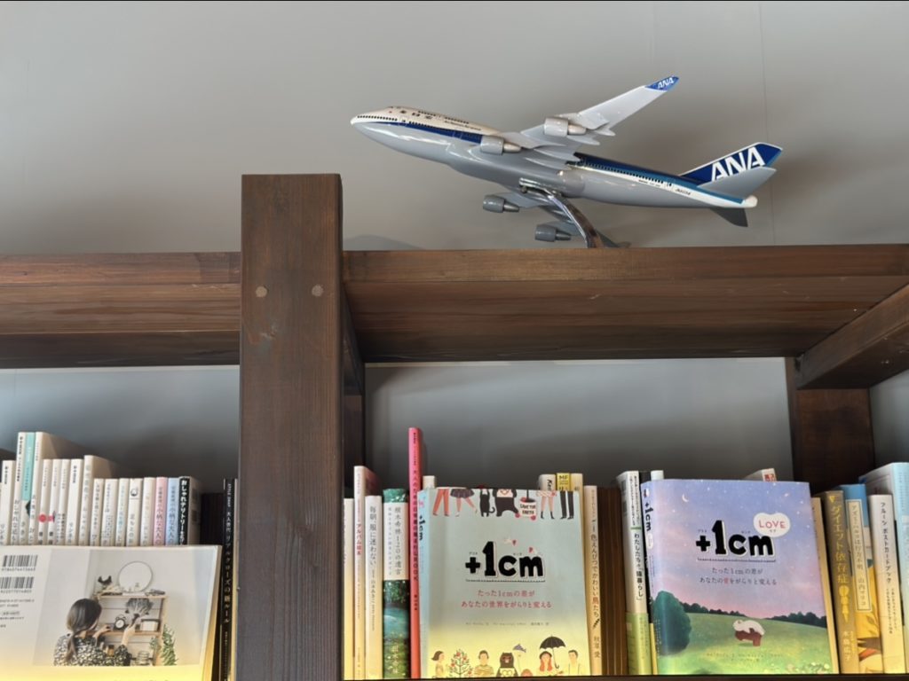 飛行機好きの私たち、棚の上にある模型を見つけて奥様に「これはなぜ置いてあるんですか?」と聞いてみると、旅好きのご主人のものだそう。