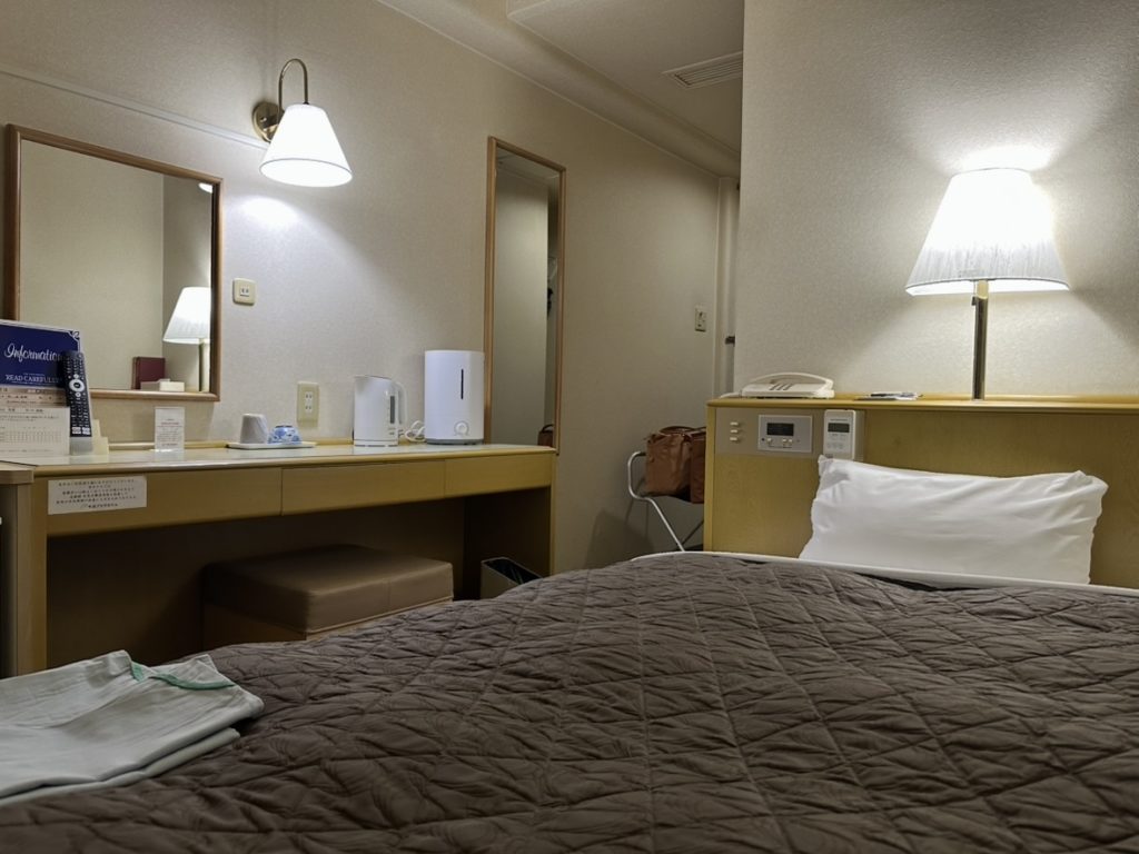 シングルのお部屋でも、ちゃんとデスクがあって、作業もしやすい。