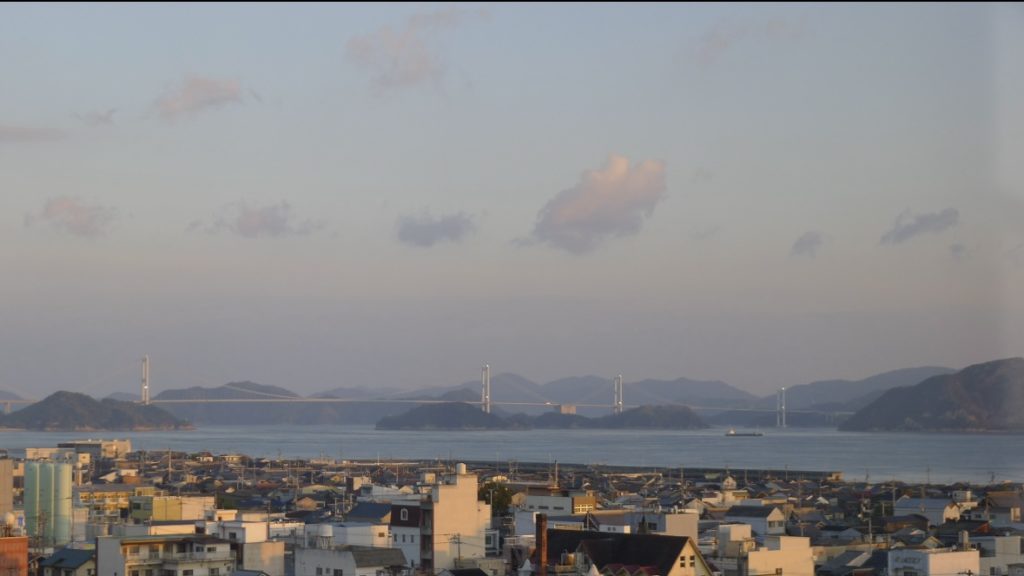 撮影は少しだけズームにしているものの、しっかりとしまなみ海道が見えます。