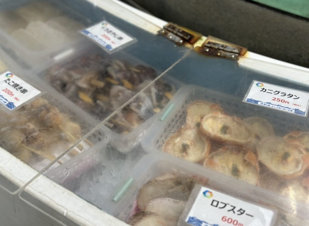 具材の売り場には新鮮な魚介類はもちろん、お肉や野菜、子ども達が喜びそうなグラタンなど様々な具材が並びます。