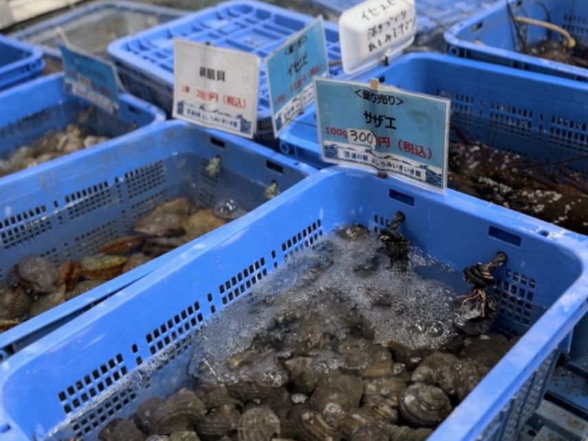 いけすには貝や魚が。