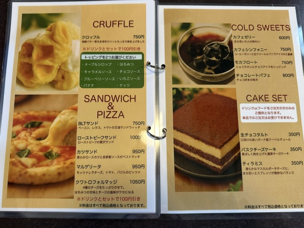 BLTサンドやローストビーフサンド、マルゲリータなどしっかり食事メニューもあれば生チョコタルト、バスクチーズケーキなどのスイーツも気になります。