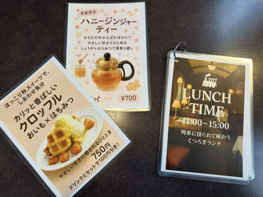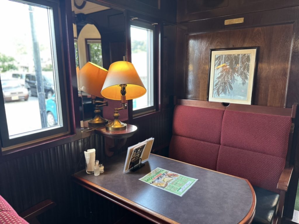 座席は列車の座席を模したレイアウトやライト使いで統一されているので、店内にいるだけで列車旅行をしているような気分に。