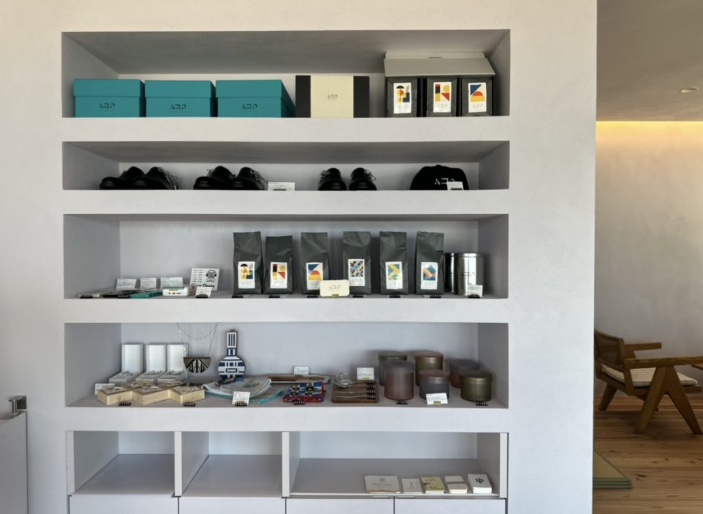 また、棚にはアクセサリーやカトラリー、器に加えて靴も並んでいました。