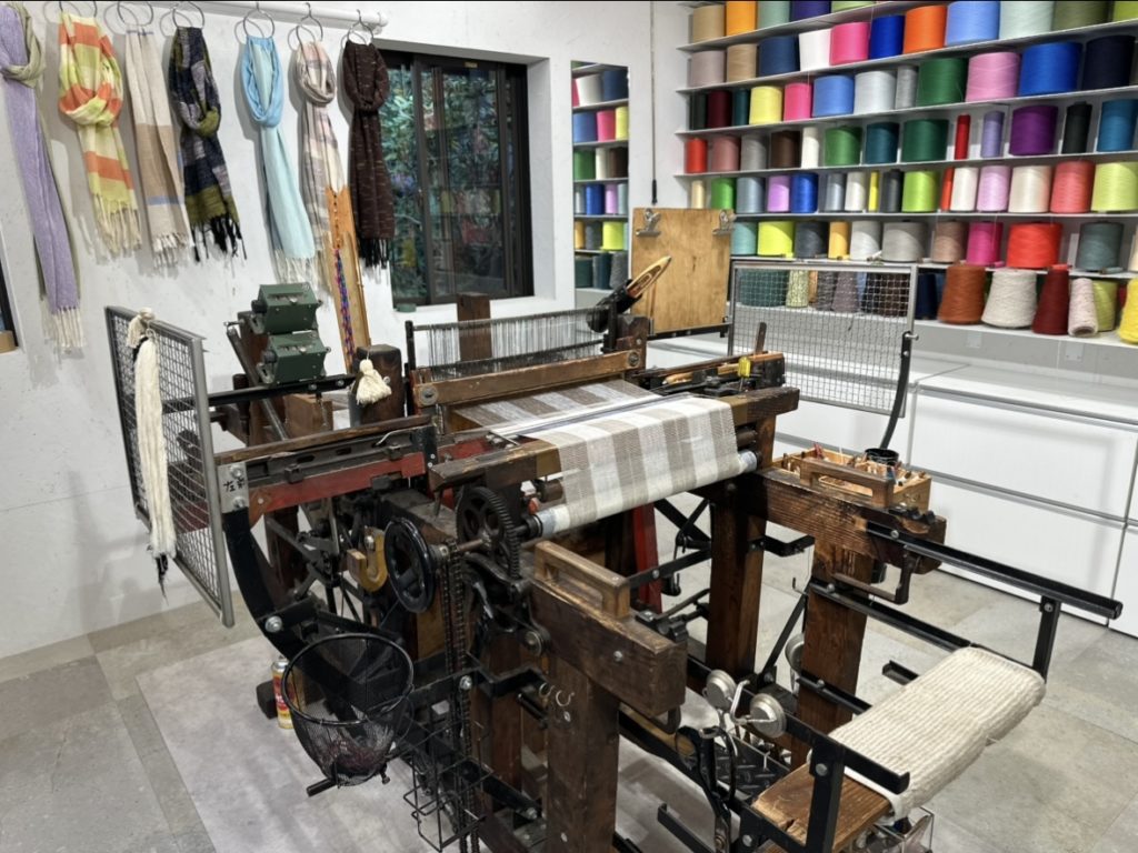 そして何より目が行くのはアトリエ内置かれている「足踏み織機」。