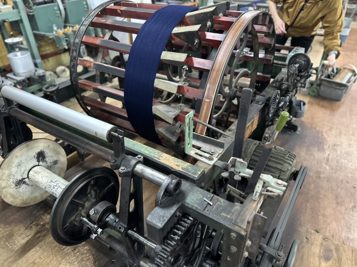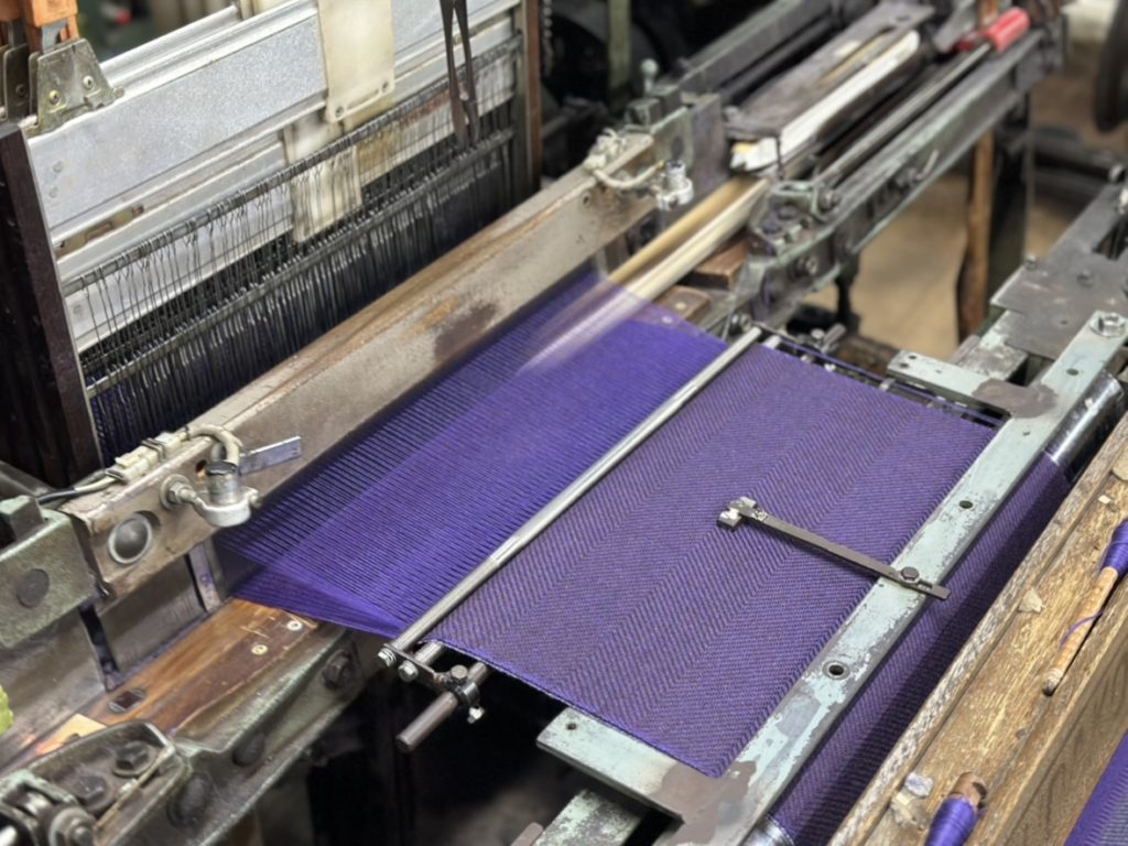 工場見学では、旧式のシャトル織機が今も現役で稼働している貴重な様子を見せていただきました。