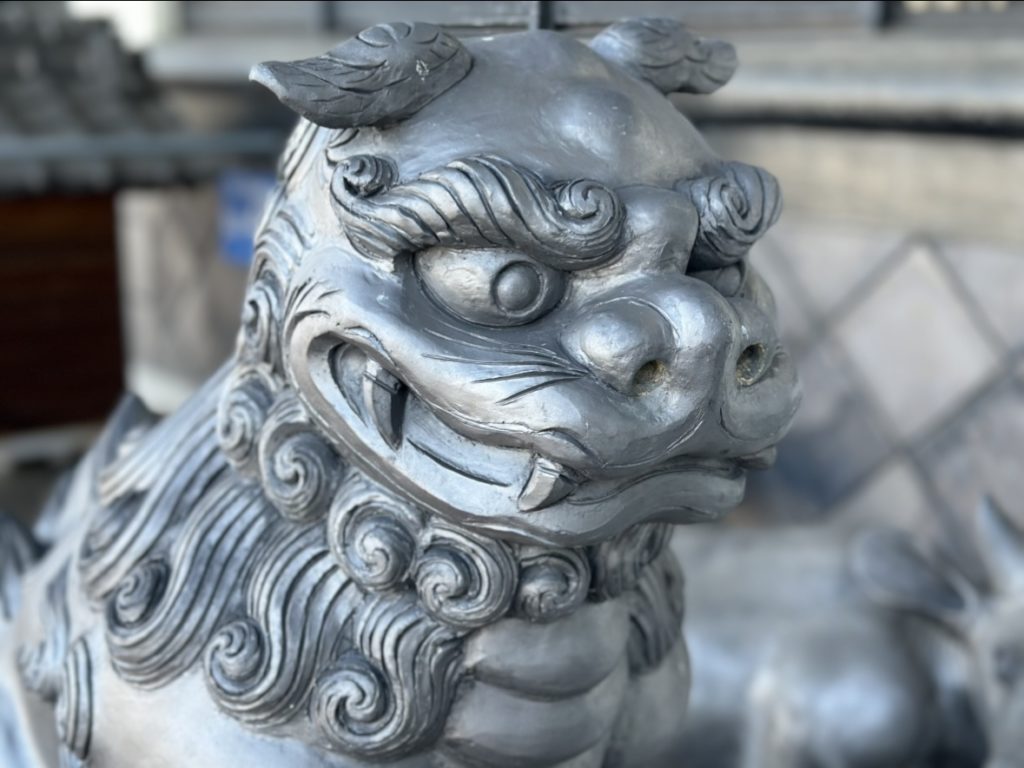 ツヤツヤで美しい狛犬が玄関先でお出迎え。