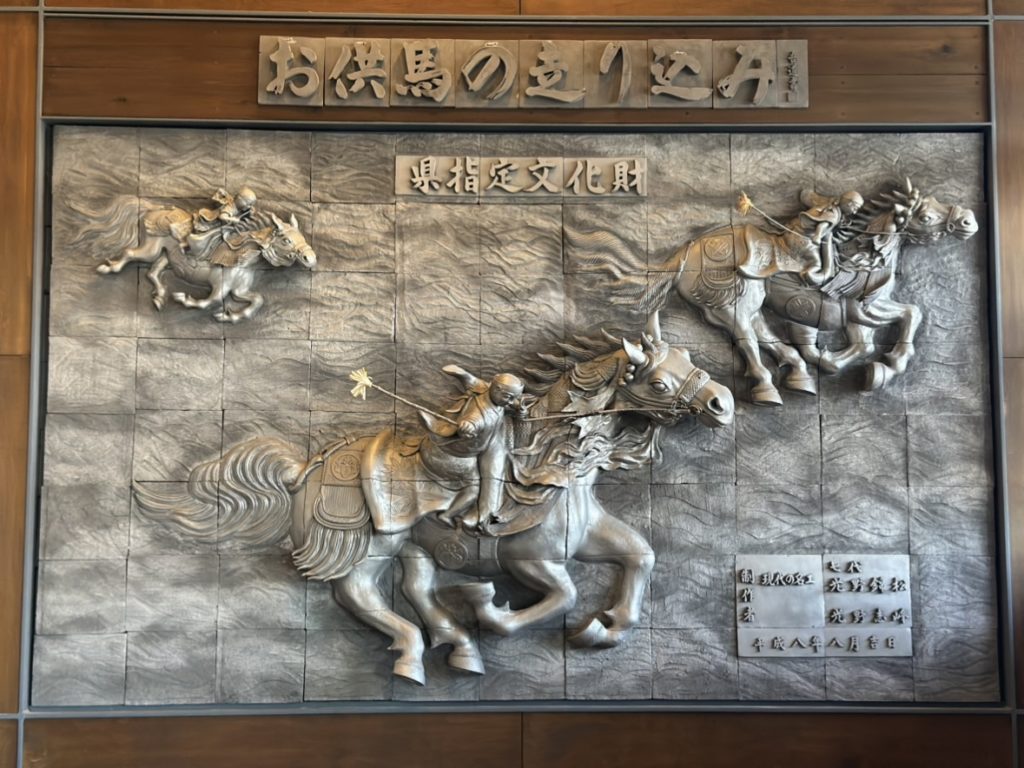 中に入ると、毎年、菊間祭りに行われる「お供馬の走り込み」をモチーフにした作品が。