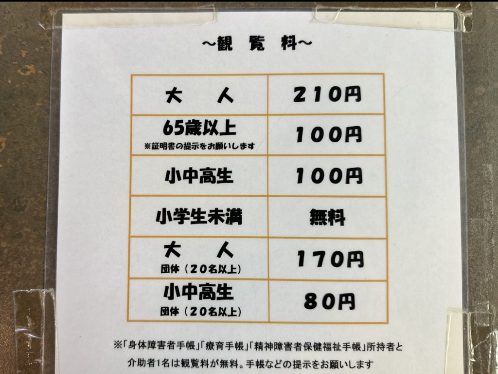 観覧料:大人210円、小中高生100円、65歳以上100円