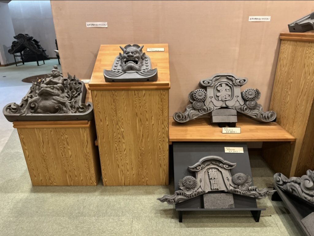3階の展示室には、珍しい鬼瓦、貴重な屋根瓦等を展示している他、日本各地で活躍している現代の名工に選ばれた鬼師達の作品や瓦造りの道具、世界各国の瓦等が展示されています。